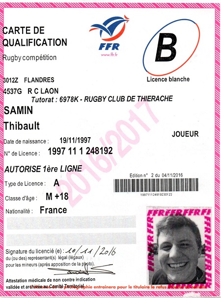Nom:   Samin Prénom:   Thibault Date de naissance:   Mercredi 19 novembre 1997 |