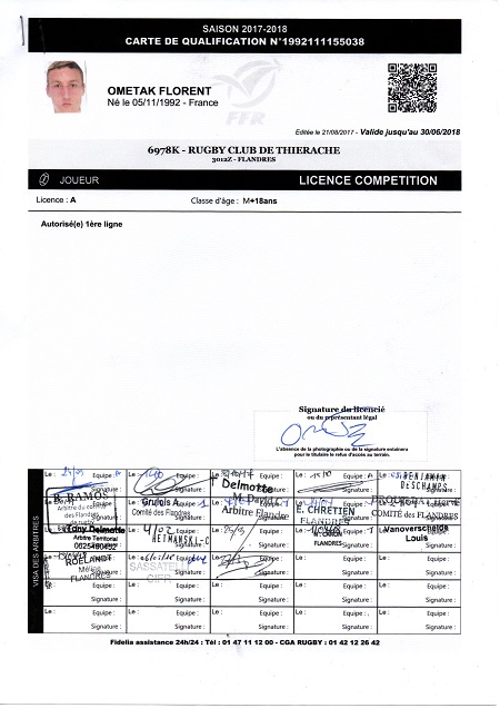 Nom:   Ometak Prénom:   Florent Date de naissance:   Jeudi 05 novembre 1992 Lieu de naissance:   St Quentin (France) Poste:   2eme ligne |