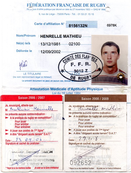 Nom:   Henrelle Prénom:   Mathieu Date de naissance:   Dimanche 13 décembre 1981 Poste:   Ailier |