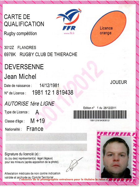 Nom:   Deversenne Prénom:   Jean Michel Date de naissance:   Lundi 14 décembre 1981 |