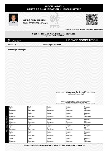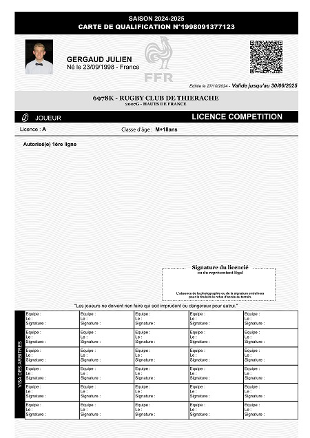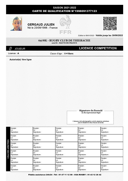 Nom:   Gergaud Prénom:   Julien Date de naissance:   Mercredi 23 septembre 1998 Lieu de naissance:   Cambrai (France) Poste:   Ailier |