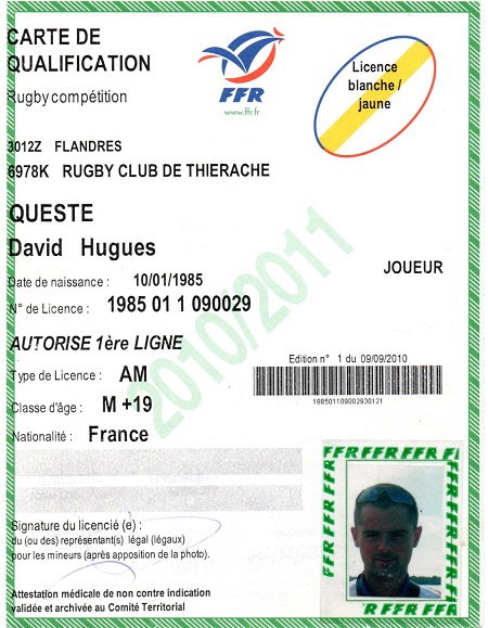 Nom:   Queste Prénom:   David Hugues Date de naissance:   Jeudi 10 janvier 1985 |