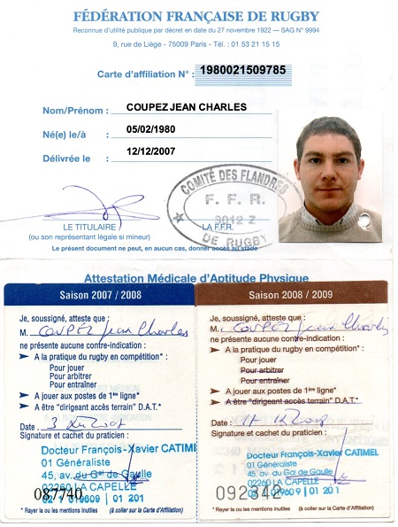 Nom:   Coupez Prénom:   Jean-Charles Date de naissance:   Mardi 05 février 1980 Lieu de naissance:   St Quentin (France) Poste:   3eme ligne |