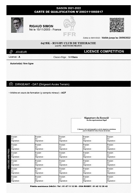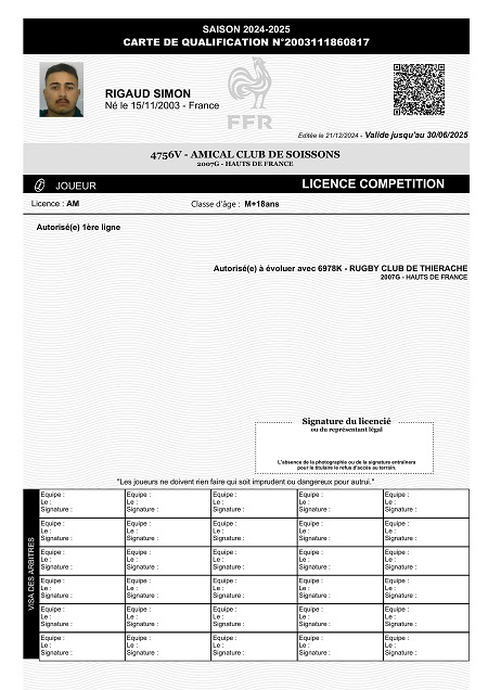 Nom:   Rigaud Prénom:   Simon Date de naissance:   Samedi 15 novembre 2003 Lieu de naissance:   St Quentin (France) Poste:   Ailier |