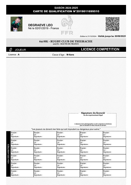 Lien de parenté avec une autre personne licenciée au club: