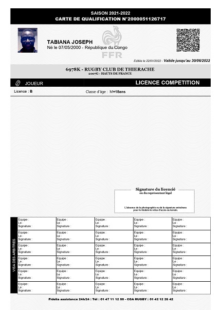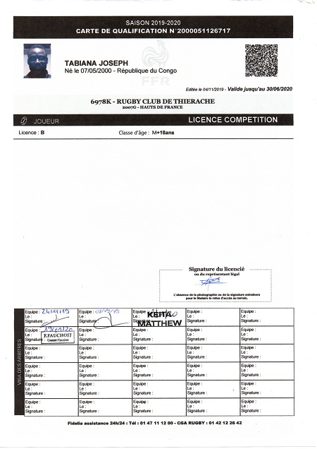 Nom:   Tabiana Prénom:   Joseph Date de naissance:   Dimanche 07 mai 2000 Lieu de naissance:   Kinshasa (République démocratique du congo) Poste:   Ailier |