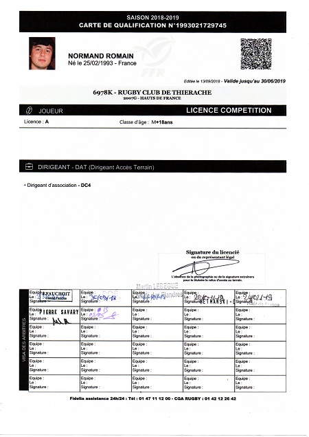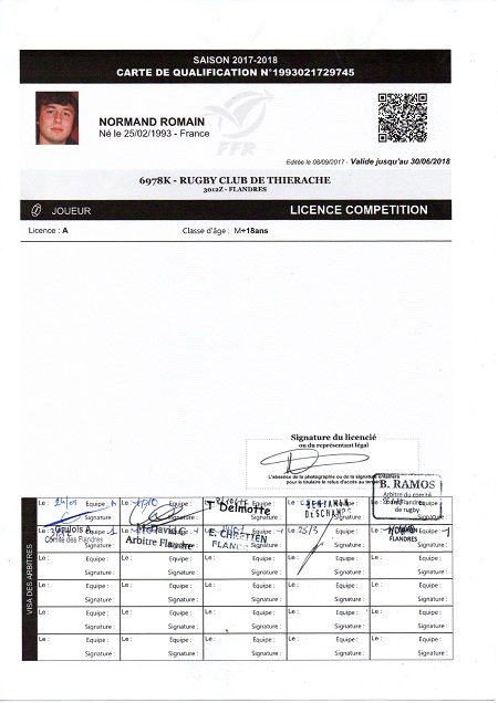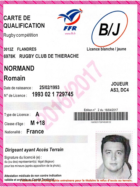 Nom:   Normand Prénom:   Romain Date de naissance:   Jeudi 25 février 1993 Lieu de naissance:   Saint Quentin (France) Poste:   Avant, arriere, Arbitre, entraineur Comité ou ligue:   Comité des Flandres |