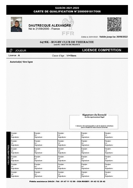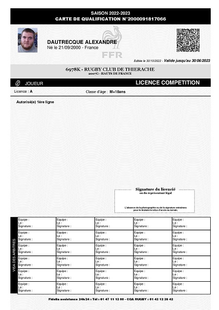 Nom:   Dautrecque Prénom:   Alexandre Date de naissance:   Jeudi 21 septembre 2000 Lieu de naissance:   Hirson (France) Poste:   Pilier |