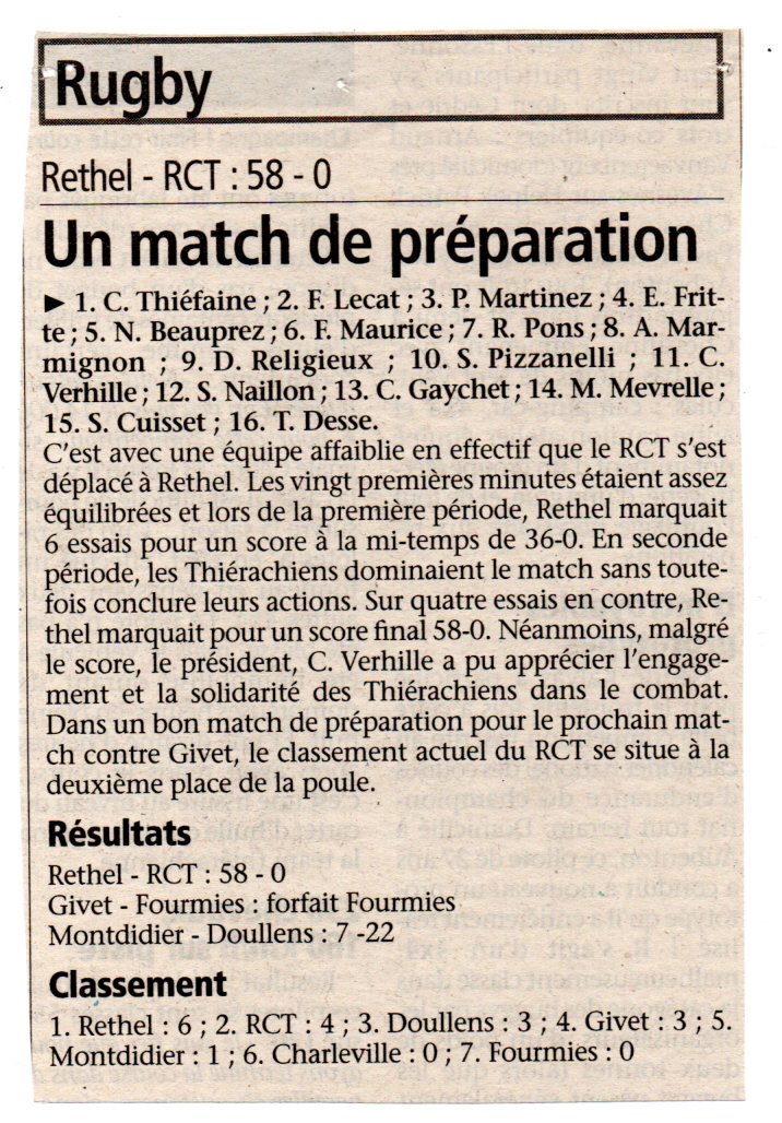 Dimanche 03 octobre 2004  15h00     Rethel