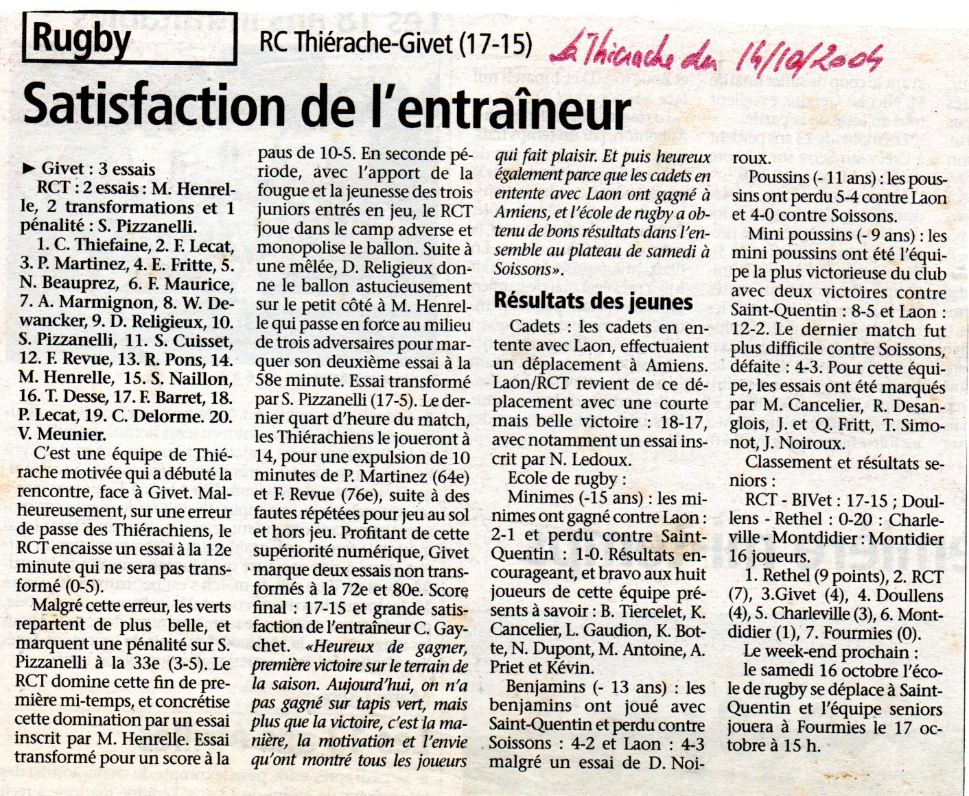 Composition du RC Thiérache