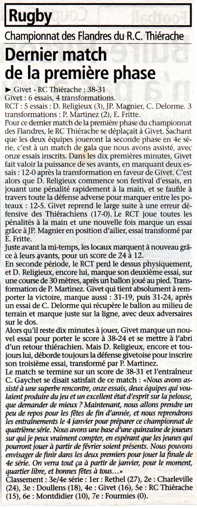 Dimanche 12 décembre 2004  15h00     Givet