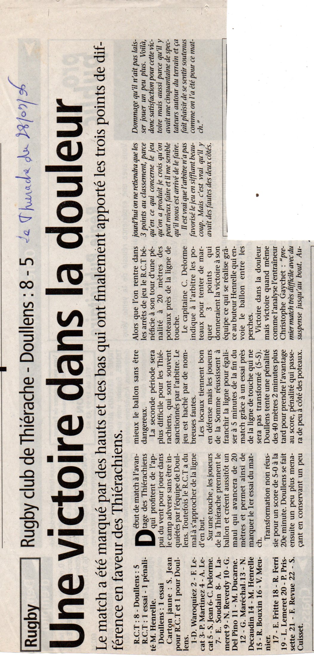 Si vous avez des images de ce match, n'hésitez pas à nous envoyer une copie ;-)