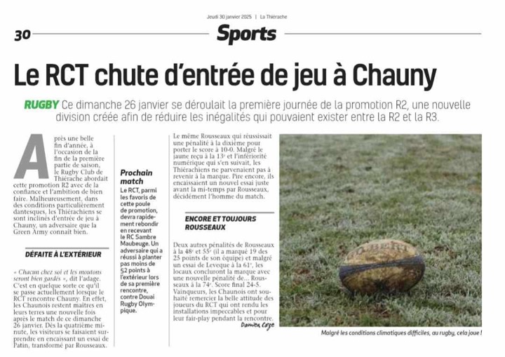 Dimanche 26 janvier 2025  15h00     Stade du vélodrome, Chauny