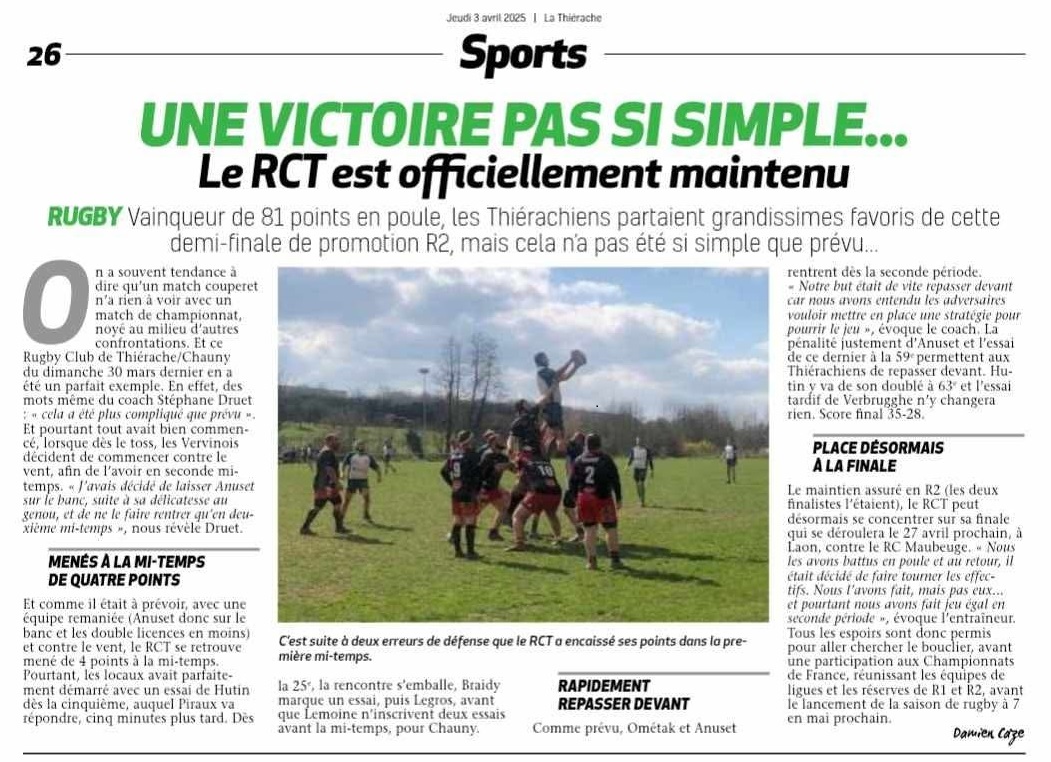 Dimanche 30 mars 2025  15h00     Stade de la fontaine des prêtres, Vervins