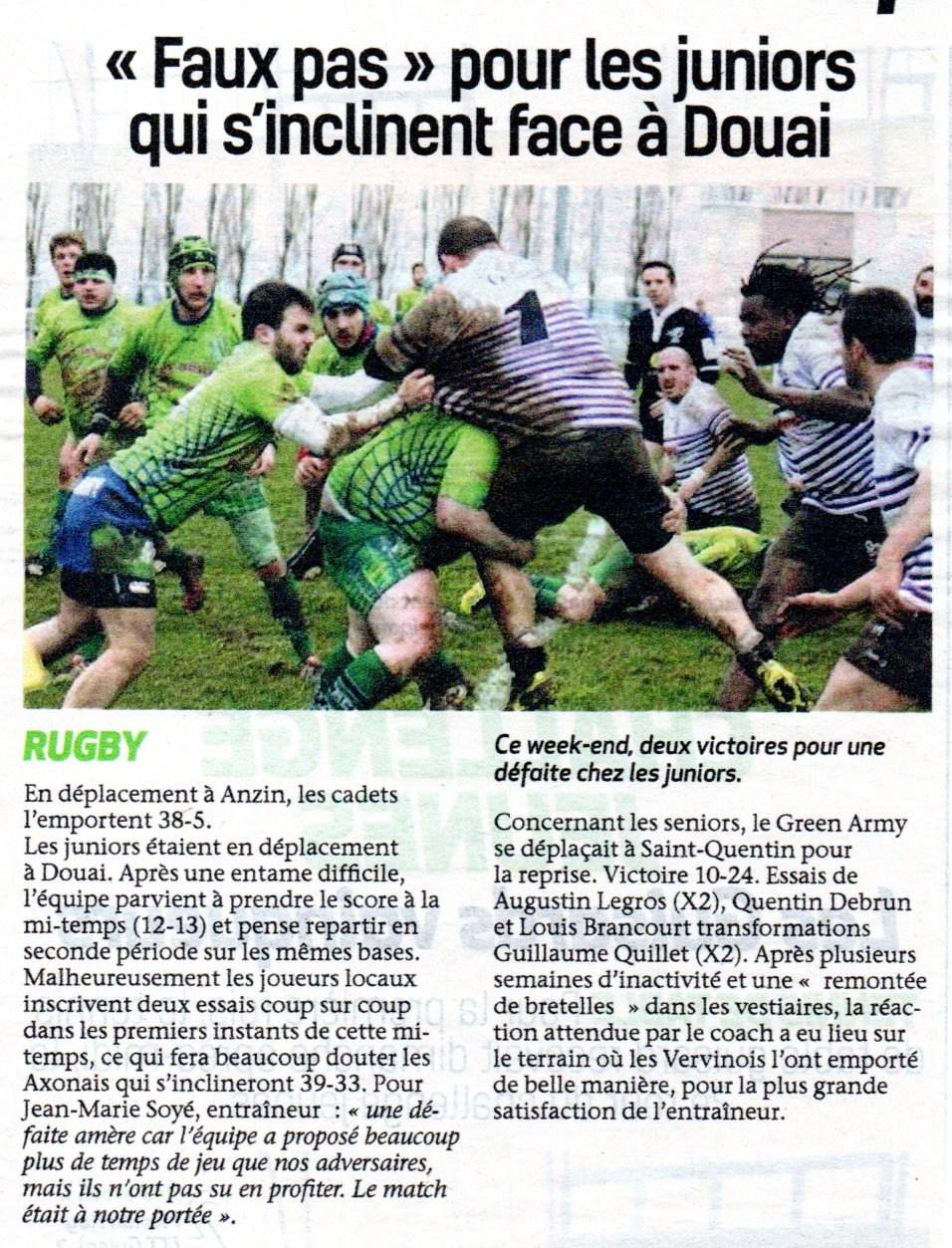 Dimanche 07 janvier 2018  15h00     Complexe Marcel Bienfait, Saint Quentin