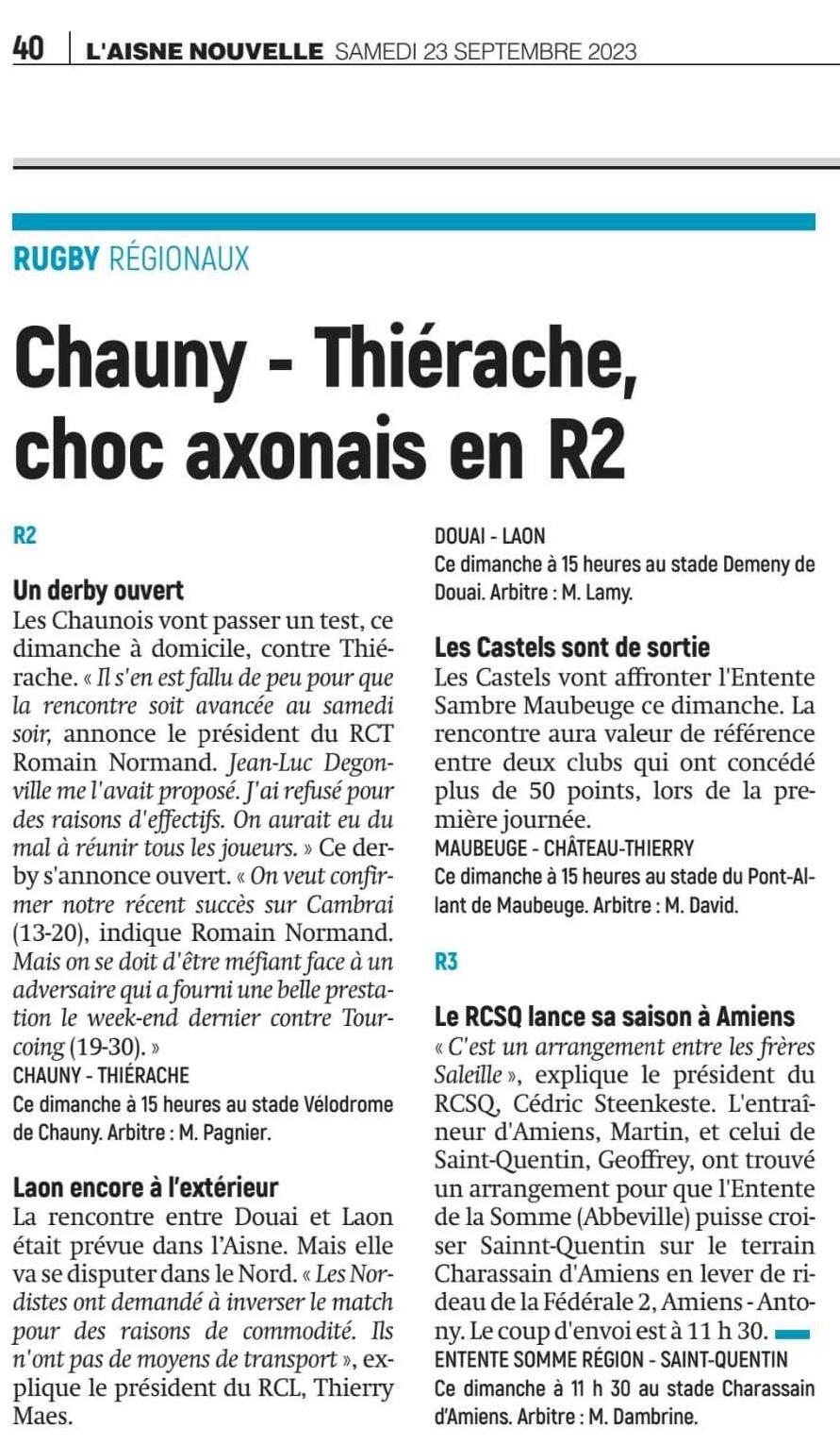 Dimanche 24 septembre 2023  15h00     Chauny, stade du Vélodrome