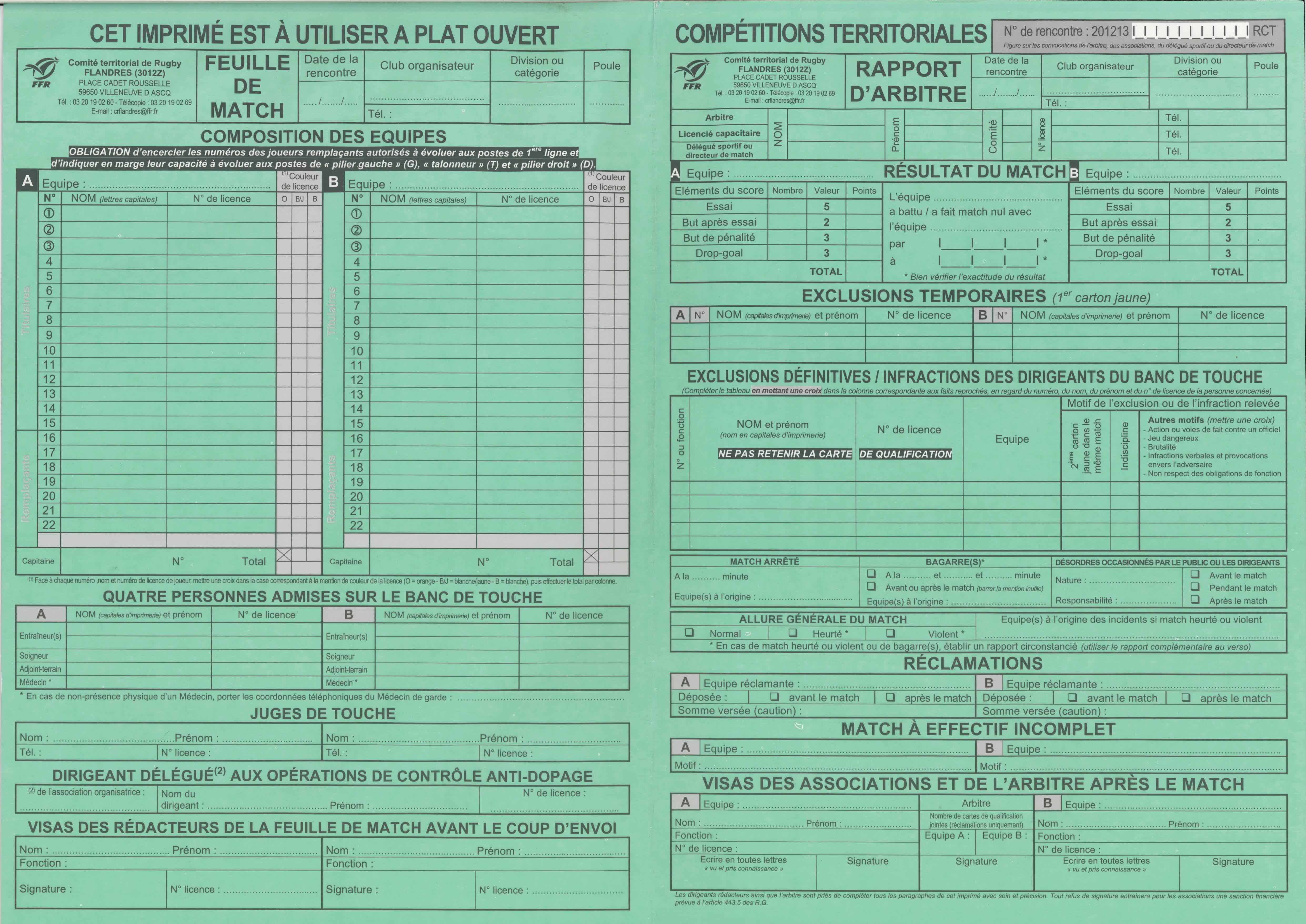 Voici un exmplaire de la feuille de match de la saison 2012-2013 :
