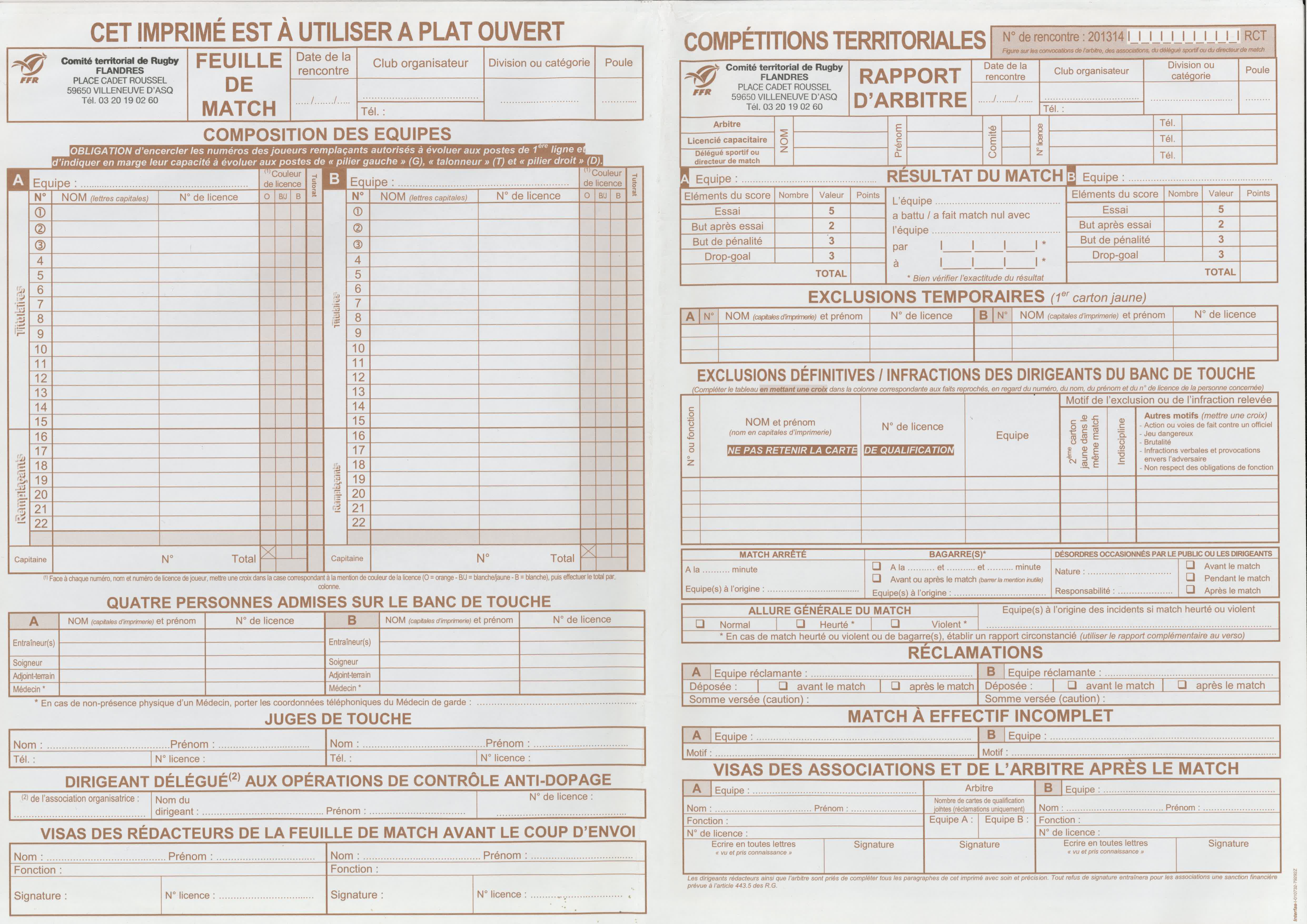 Voici un exmplaire de la feuille de match de la saison 2013-2014 :