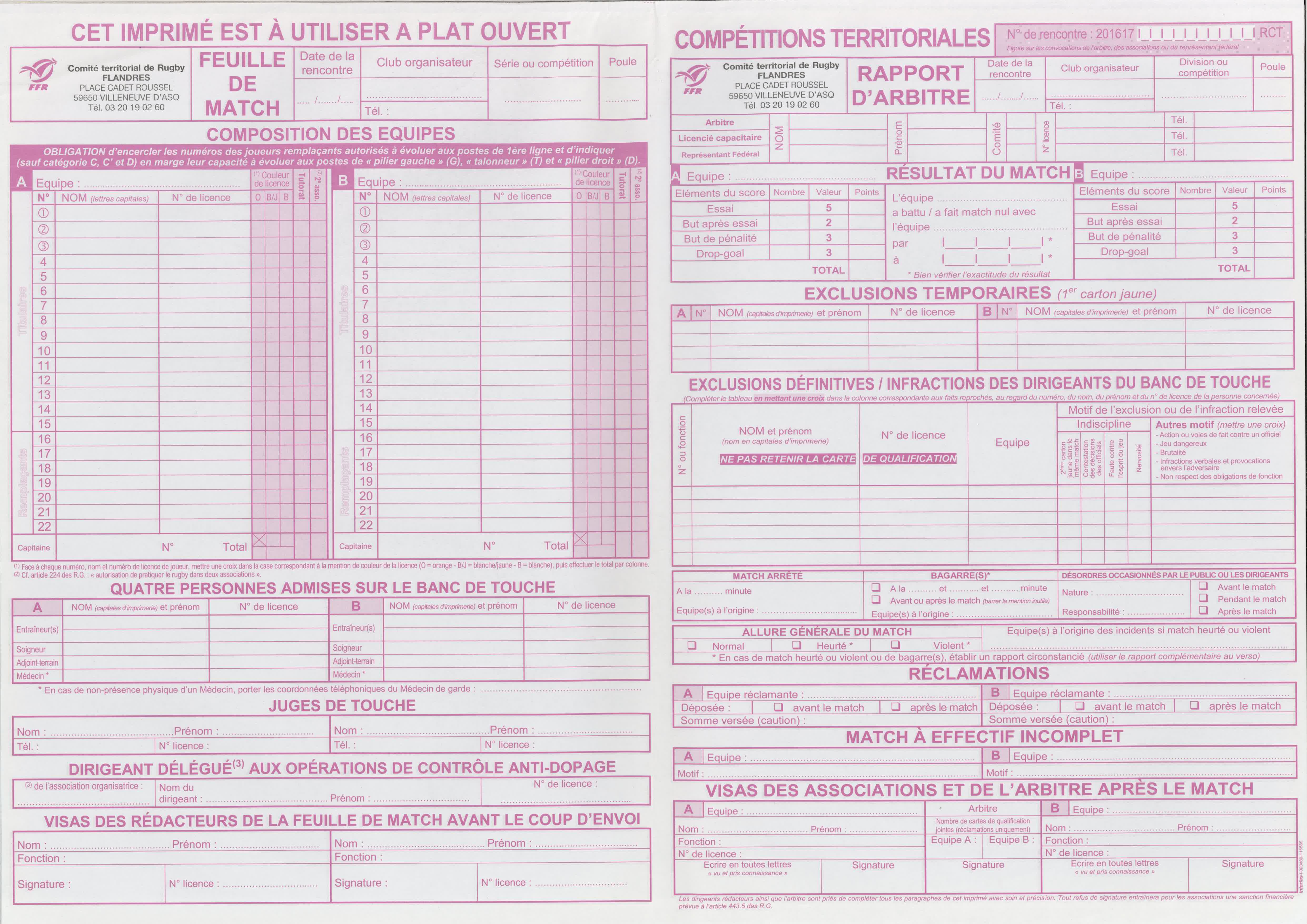 Voici un exmplaire de la feuille de match de la saison 2016-2017 :